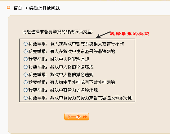 第二步:进入举报类别